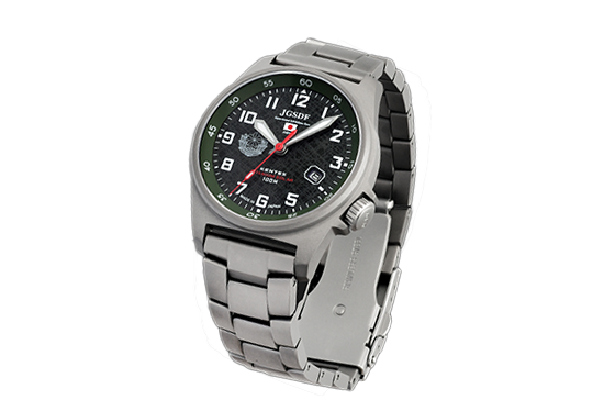 軽さと強さを兼ね備えた「JSDFチタンソーラー」は、軽量かつ高耐食性を誇るチタン素材と、定期的な電池交換を不要とするソーラームーブメントを融合した新世代のミリタリーウォッチです。ベルトは軽量で堅牢なチタンブレスレット仕様と、フィールドでの機動性を高めるナイロンベルト仕様の2タイプをラインナップ。